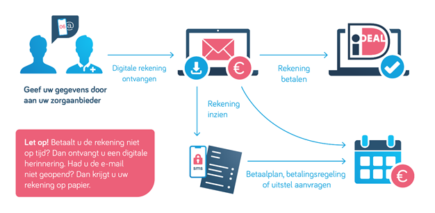 Ook wanneer u de nota digitaal ontvangt, heeft u nog altijd 30 dagen de tijd om de rekening te betalen. Betaalt u via internetbankieren, let er dan op dat u de betaalgegevens gebruikt die op deze rekening staan. U kunt ook de QR-code die op de rekening staat scannen met uw mobiele telefoon. U wordt dan direct naar uw iDEAL-betaalpagina geleid. Alle betaalgegevens zijn al netjes voor u ingevuld, waardoor u alleen nog akkoord hoeft te geven op de betaling.